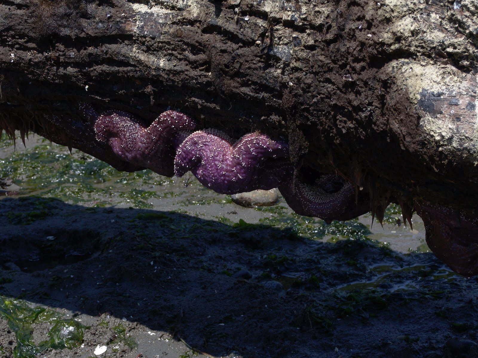 For several seasons we have looked out at a large tree which has stayed put out from the beach… rare for resisting so long being lifted & moved by even high storm tides. Usually not much, even of this size stays in place. We have observed collections of starfish in its roots before & expected them this time, but that mass seemed abandoned today.