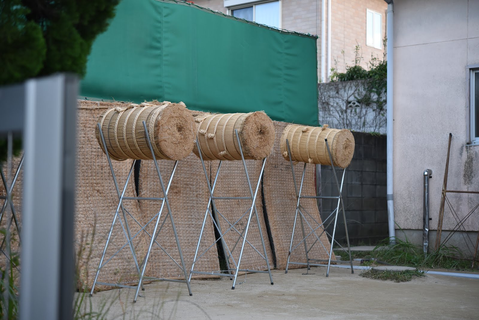 I made several videos of a video being looped as part of the display which conveys more of the action, excitement & skill with which these huge constructions are pulled through the streets: