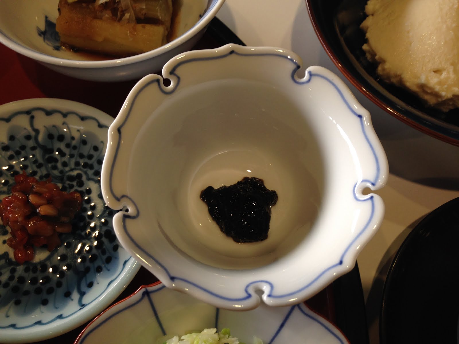 Meal menus & timing were discussed before… dinner after breakfast & breakfast after dinner. Breakfast was served in a designated dining room on the ground floor…. ‘Just at the bottom of our stairs. We were seated at table prepared to look like this… porridge of rice or barley, vegetables, a custard, always a pickled dish… plus a small whole fish, fried very crispy!