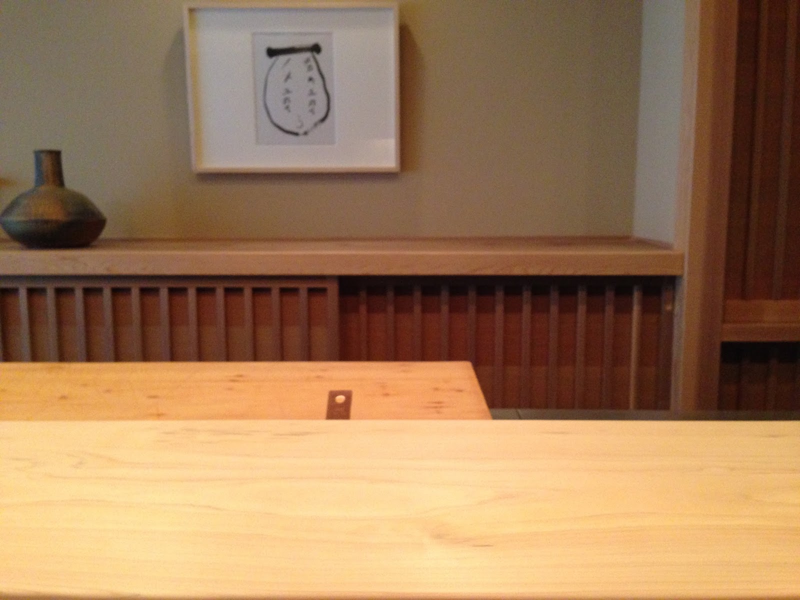An extraordinary lunch had been set-up for us by edict from Terry-san at a pristine sushi restaurant with only six seats… which we had to ourselves. There was nothing extraneous to the gorgeous slabs of wood on which the morsels were created & served individually in front of each place. The chef, with bleached hair & ears with big piercings never spoke. He minced & obsessively wiped the wood surfaces at ever turn. This became fascinating theater!